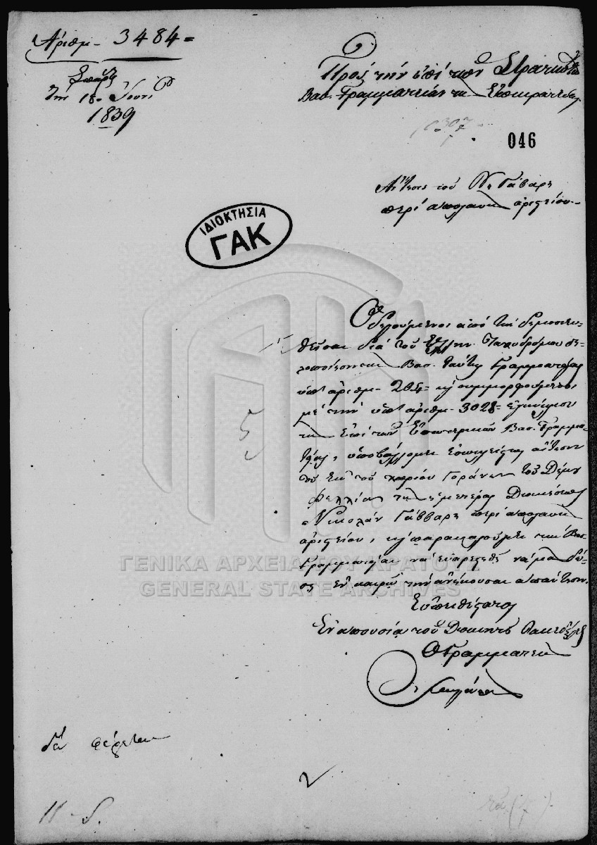 Item #046 - Υπηρεσιακή αλληλογραφία  [18 Ιουνίου 1839]