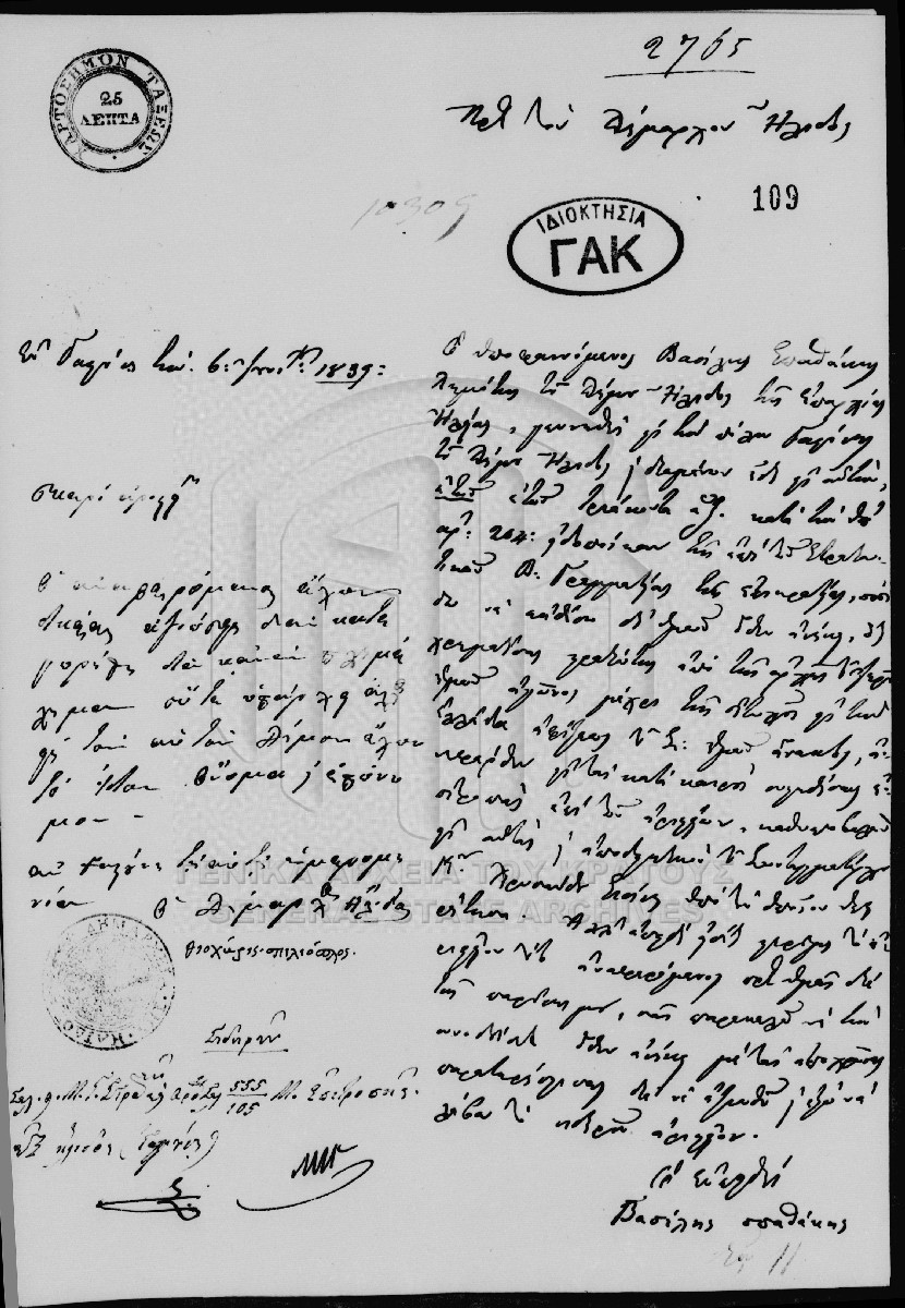 [Τεκμήριο] GRGSA-CSA_PAO007.00.01.F000025.IT000109 Τεκμήριο #109 - Aτομική αίτηση απονομής [6 Ιουνίου 1839] Αίτηση για απονομή αριστείου του Βασιλείου Σπαθάκη, κατοίκου του χωριού Γαστούνη του δήμου Ήλιδος, προς το δήμαρχο του ομώνυμου δήμου. |
