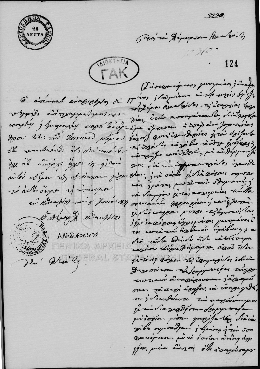 [Αρχείο] GRGSA-CSA_PAO007.00 Αριστεία [1834 - 1865] Το αρχείο αποτελείται από 307 φακέλους ποικίλου όγκου, οι οποίοι φέρουν ταξινομική αρίθμηση κατά χρονολογική σειρά, από 1-307. Αθροιστικά... |