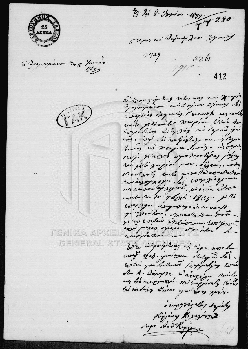 [Αρχείο] GRGSA-CSA_PAO007.00 Αριστεία [1834 - 1865] Το αρχείο αποτελείται από 307 φακέλους ποικίλου όγκου, οι οποίοι φέρουν ταξινομική αρίθμηση κατά χρονολογική σειρά, από 1-307. Αθροιστικά... |