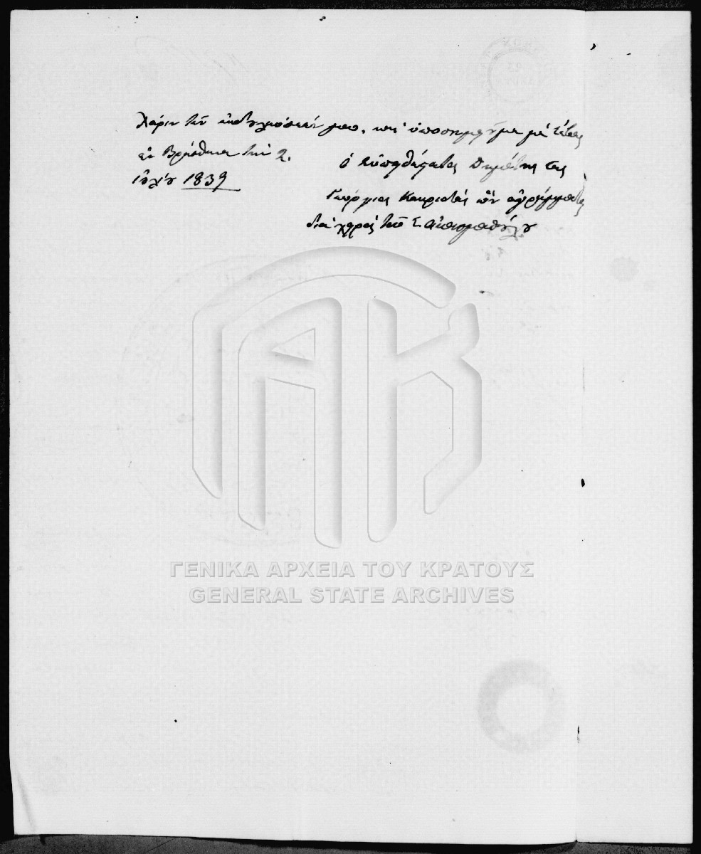 [Item] GRGSA-CSA_PAO007.00.01.F000028.IT000077 Item #077 - Aτομική αίτηση απονομής [2 Ιουλίου 1839] Αίτηση του Γεώργιου Κακριδά προς το δήμαρχο Ευρυσθενών, προκειμένου να του απονεμηθεί αριστείο. Στην αριστερή πλευρά του εγγράφου υπάρχει... |