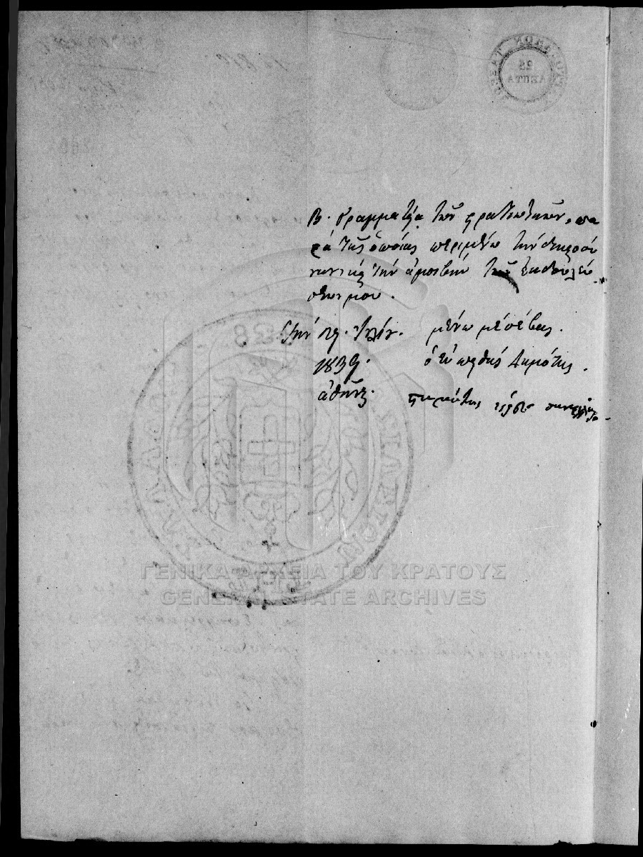 [Item] GRGSA-CSA_PAO007.00.01.F000030.IT000260 Item #260 - Aτομική αίτηση απονομής [29 Ιουλίου 1839] Επιστολή του Σταμάτιου Σακελλάριου προς το Δημαρχείο Αθηνών με την οποία ζητά εκ νέου να του απονεμηθεί αριστείο ως ανταμοιβή για τις υπη... |