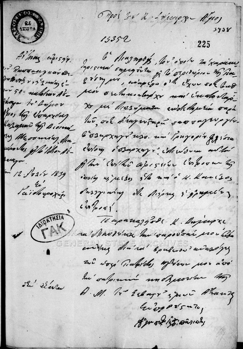 [Fonds] GRGSA-CSA_PAO007.00 Archive of Honorary Awards - Archive of Honorary Awards [1834 - 1865] Το αρχείο αποτελείται από 307 φακέλους ποικίλου όγκου, οι οποίοι φέρουν ταξινομική αρίθμηση κατά χρονολογική σειρά, από 1-307. Αθροιστικά... |