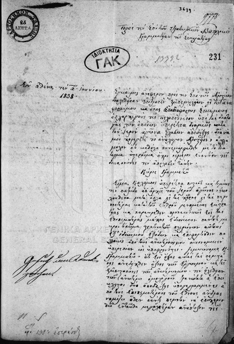 [Item] GRGSA-CSA_PAO007.00.01.F000031.IT000231 Item #231 - Aτομική αίτηση απονομής [1 Ιουνίου 1838] Αίτηση του Σωτηρίου Δουκάκη προς την επί των Στρατιωτικών Β. Γραμματεία της Επικρατείας, για χορήγηση αριστείου. |