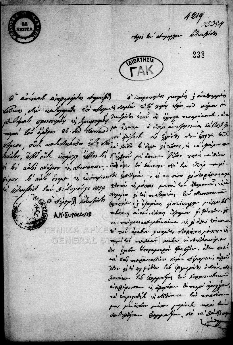 Item #238 - Aτομική αίτηση απονομής  [3 Αυγούστου 1839]