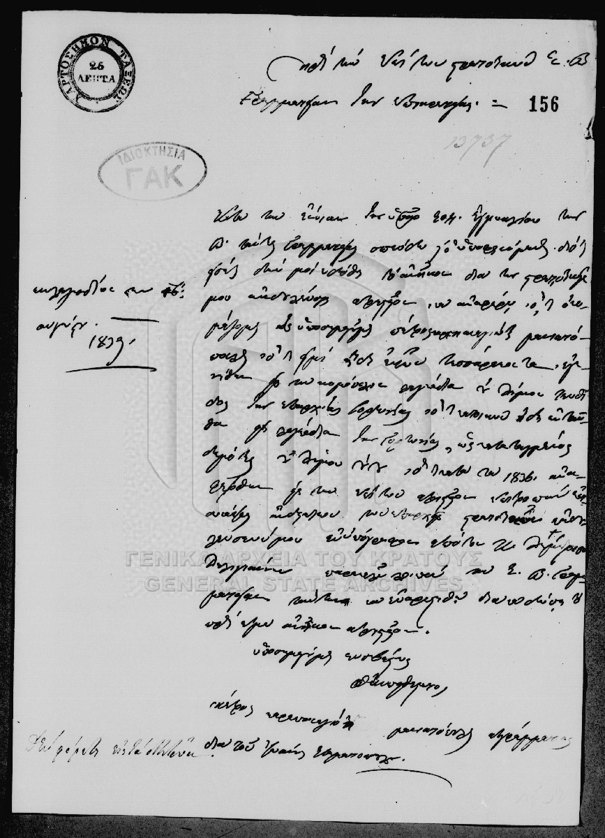 [Item] GRGSA-CSA_PAO007.00.01.F000032.IT000156 Item #156 - Aτομική αίτηση απονομής [16 Αυγούστου 1839] Αίτηση του Πέτρου Καραπαναγιώτη Μανιατόπουλου προς την επί των Στρατιωτικών Γραμματεία της Επικρατείας, προκειμένου να του απονεμηθεί αρι... |