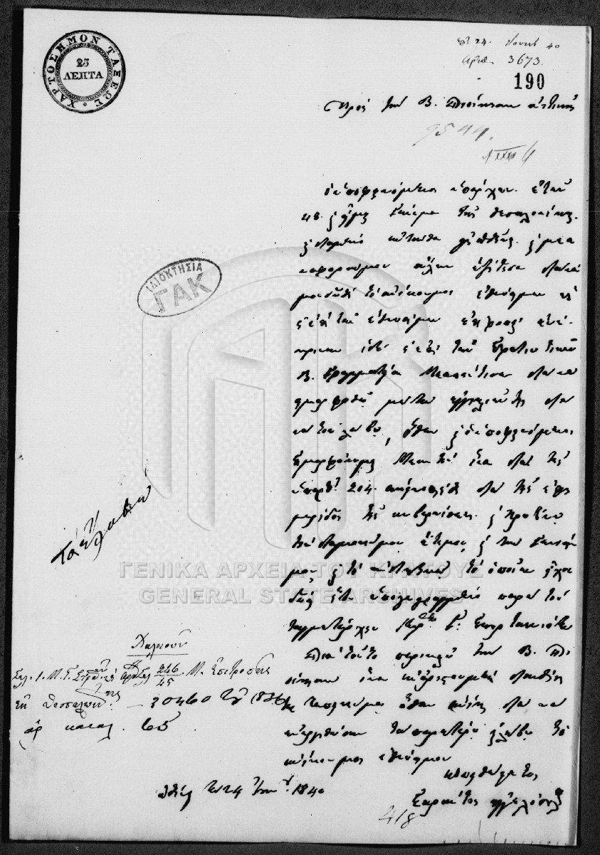Τεκμήριο #190 - Aτομική αίτηση απονομής  [24 Ιουνίου 1840]