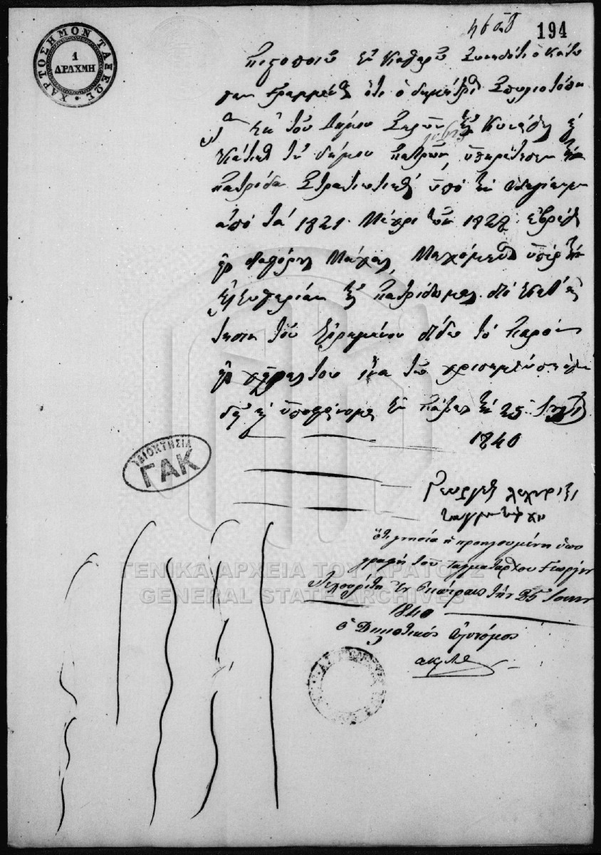 Τεκμήριο #194 - Πιστοποιητικά  [25 Ιουλίου 1840]