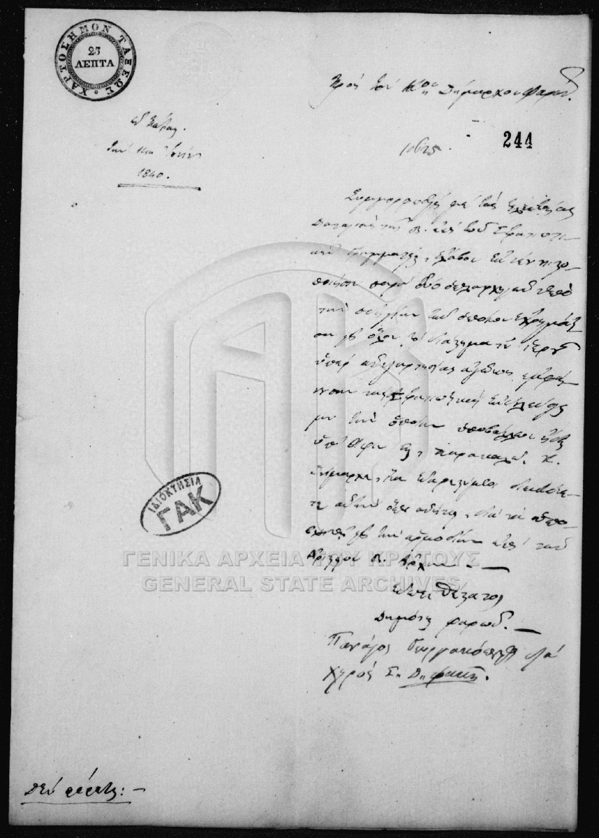 [Item] GRGSA-CSA_PAO007.00.01.F000054.IT000244 Item #244 - Aτομική αίτηση απονομής [14 Ιουνίου 1840] Αίτηση απονομής αριστείου του Πανάγου Γεωργακόπουλου προς τον Δήμαρχο Φαρών |