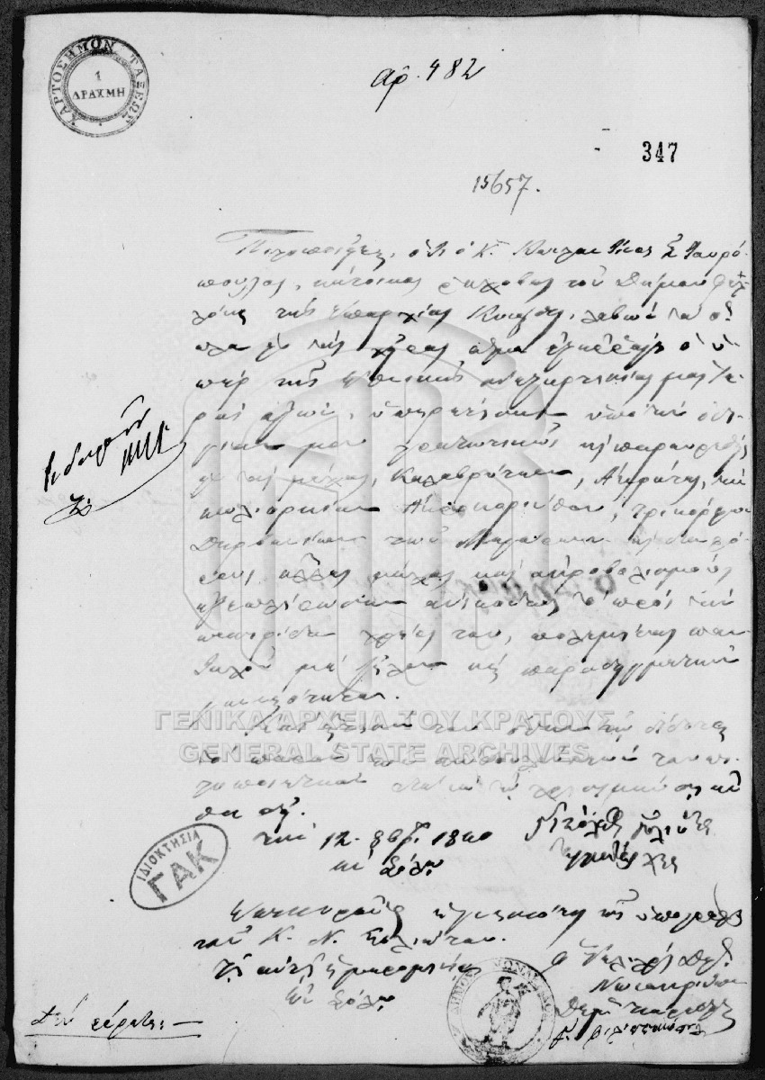 Item #347 - Πιστοποιητικά  [12 Οκτωβρίου 1840]
