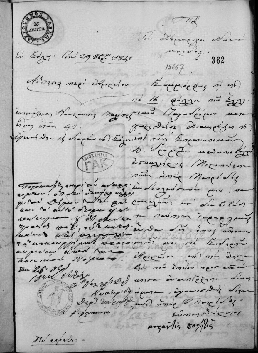 Item #362 - Aτομική αίτηση απονομής  [29 Οκτωβρίου 1840]