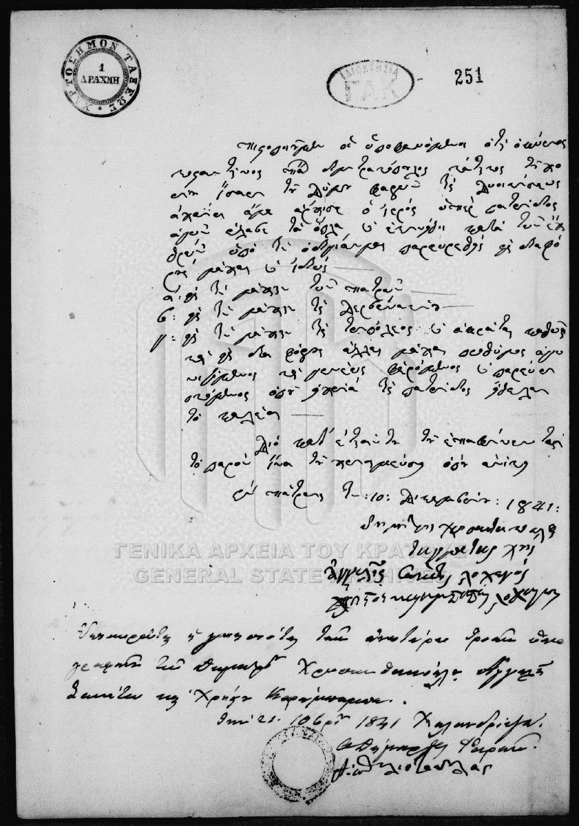 [Item] GRGSA-CSA_PAO007.00.01.F000061.IT000251 Item #251 - Πιστοποιητικά [10 Δεκεμβρίου 1841] Επιστολή των οπλαρχηγών Δημήτρη Χρυσανθακόπουλου, Χρήστου Καράμπαμπα και Αγγελή Σακάτου που πιστοποιείται ότι ο Κωνσταντίνος Δημητρακόπου... |