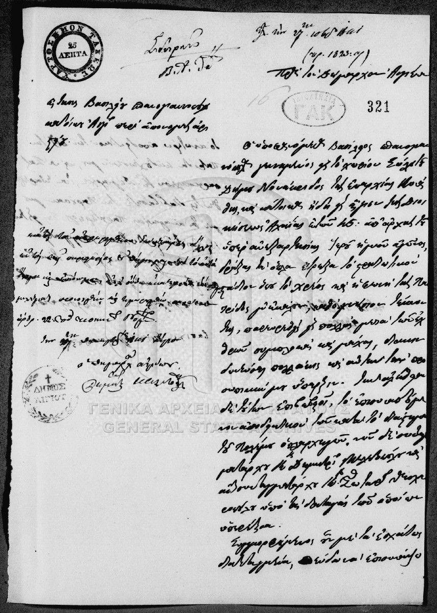 [Αρχείο] GRGSA-CSA_PAO007.00 Αριστεία [1834 - 1865] Το αρχείο αποτελείται από 307 φακέλους ποικίλου όγκου, οι οποίοι φέρουν ταξινομική αρίθμηση κατά χρονολογική σειρά, από 1-307. Αθροιστικά... |