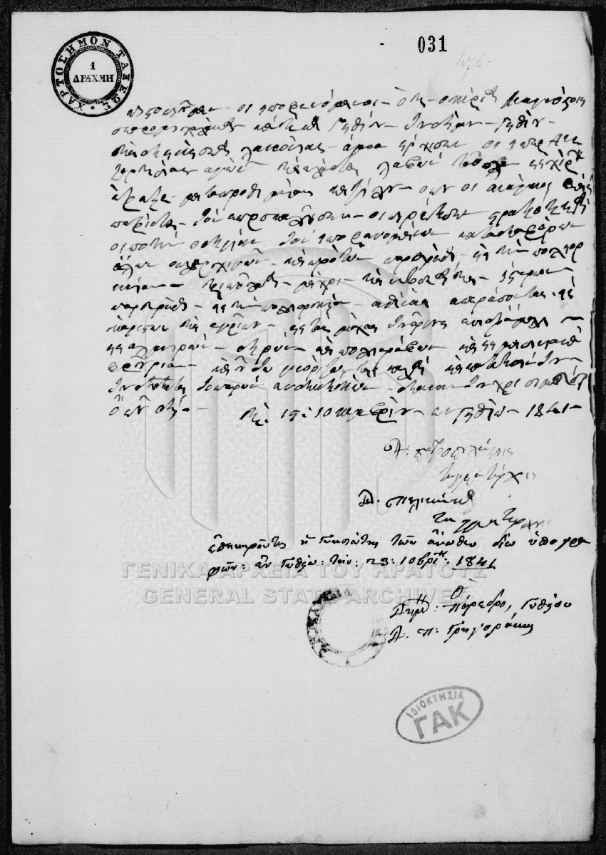 [Item] GRGSA-CSA_PAO007.00.01.F000066.IT000031 Item #031 - Πιστοποιητικά [15 Δεκεμβρίου 1841] Πιστοποιητικό του Αναγνώστη Σκαρομιχαλάκου, με το οποίο βεβαιώνεται η συμμετοχή του στον Αγώνα υπέρ της Ανεξαρτησίας. |