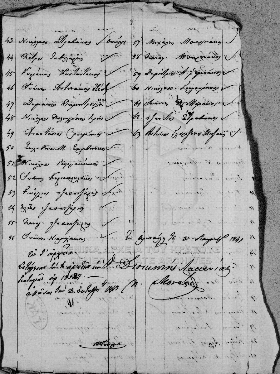 [Item] GRGSA-CSA_PAO007.00.01.F000066.IT000078 Item #078 - Ονομαστικοί κατάλογοι πολιτών αγωνιστών [31 Δεκεμβρίου 1841] Ονομαστικός κατάλογος πολιτών αγωνιστών του δήμου Οιτύλου, στους οποίους απονέμεται αριστείο. |