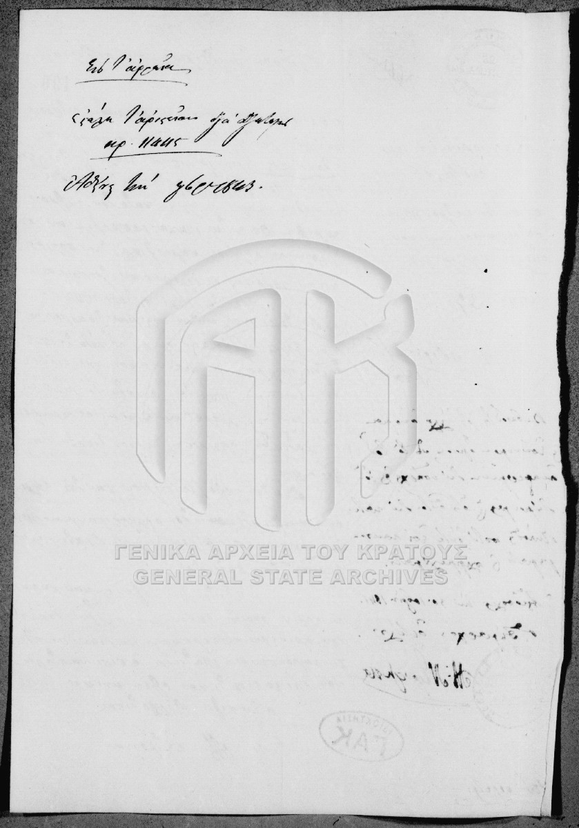 [Fonds] GRGSA-CSA_PAO007.00 Αριστεία [1834 - 1865] Το αρχείο αποτελείται από 307 φακέλους ποικίλου όγκου, οι οποίοι φέρουν ταξινομική αρίθμηση κατά χρονολογική σειρά, από 1-307. Αθροιστικά... |