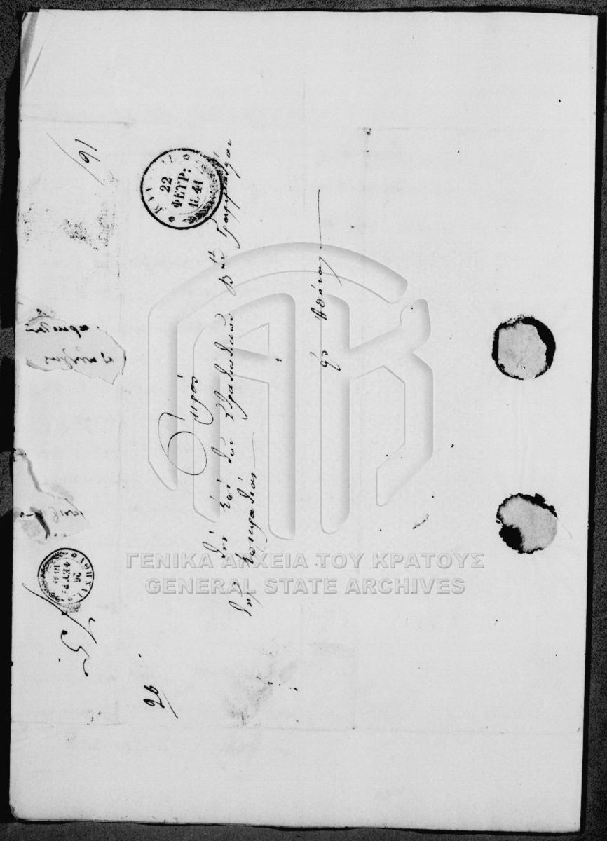 [Item] GRGSA-CSA_PAO007.00.01.F000069.IT000185 Item #185 - Aτομική αίτηση απονομής [22 Φεβρουαρίου 1841] Αίτηση του δημότη Μέσσης Δήμου Καβάτζα προς τη Γραμματεία των Στρατιωτικών, προκειμένου να του χορηγηθεί αριστείο για τη συμμετοχή του στ...  |