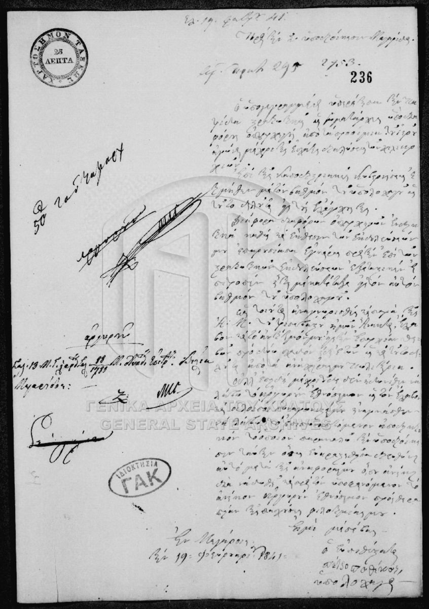 [Fonds] GRGSA-CSA_PAO007.00 Archive of Honorary Awards - Archive of Honorary Awards [1834 - 1865] Το αρχείο αποτελείται από 307 φακέλους ποικίλου όγκου, οι οποίοι φέρουν ταξινομική αρίθμηση κατά χρονολογική σειρά, από 1-307. Αθροιστικά...  |