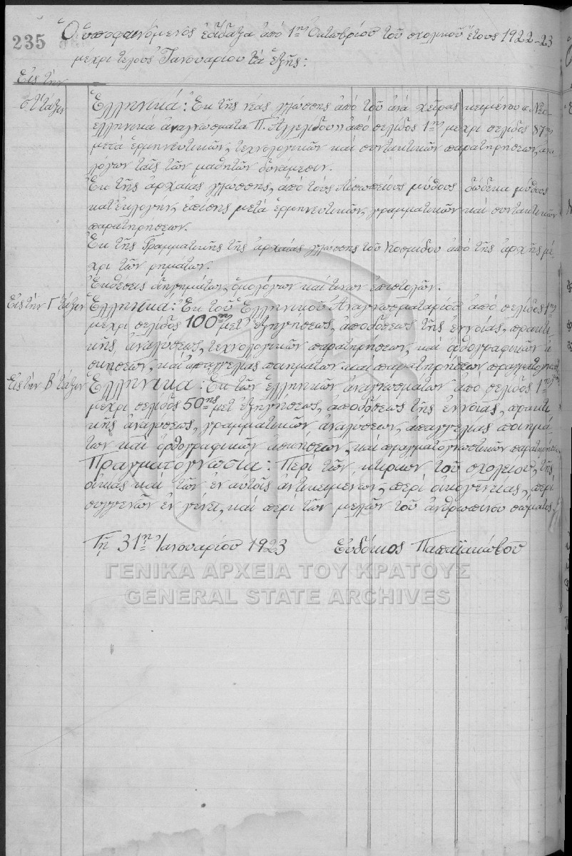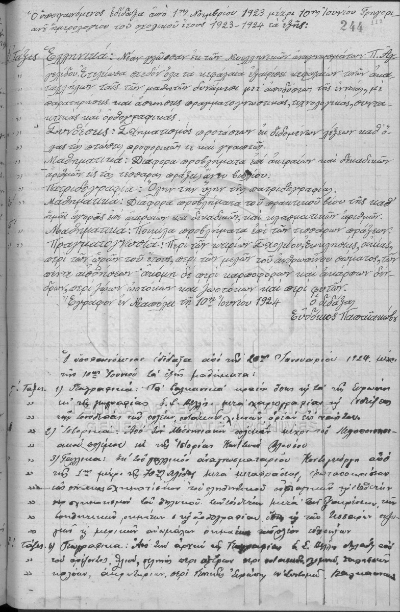Pièce #131 - "Βιβλίον πρακτικών του διδ. συλλόγου και της διδασκομένης ύλης αρχόμενον από το έτος 1921" (131_XXIII, 11)  [1921 - 1924]