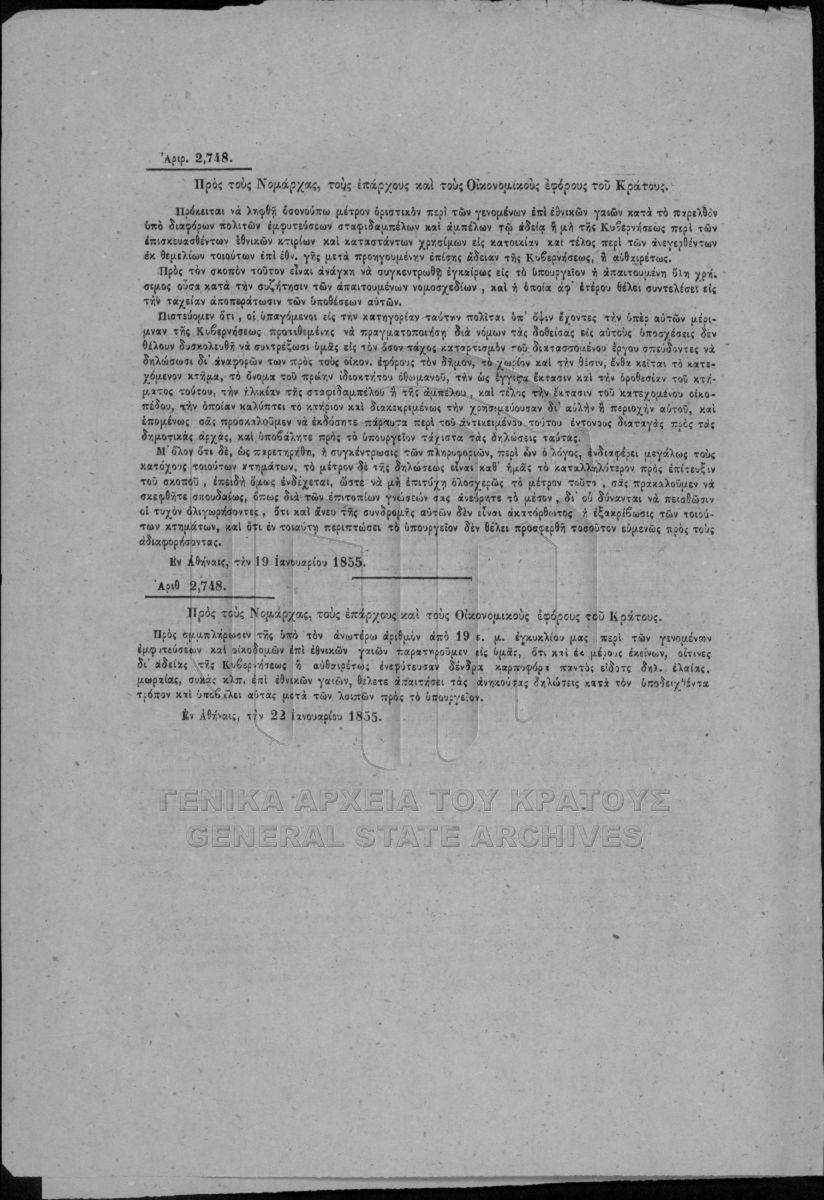 SECRETARIAT/MINISTRY OF FINANCE ARCHIVE: NATIONAL LANDS (1833-1869) - SECRETARIAT/MINISTRY OF FINANCE ARCHIVE: NATIONAL LANDS (1833-1869)  [1833 - 1869]