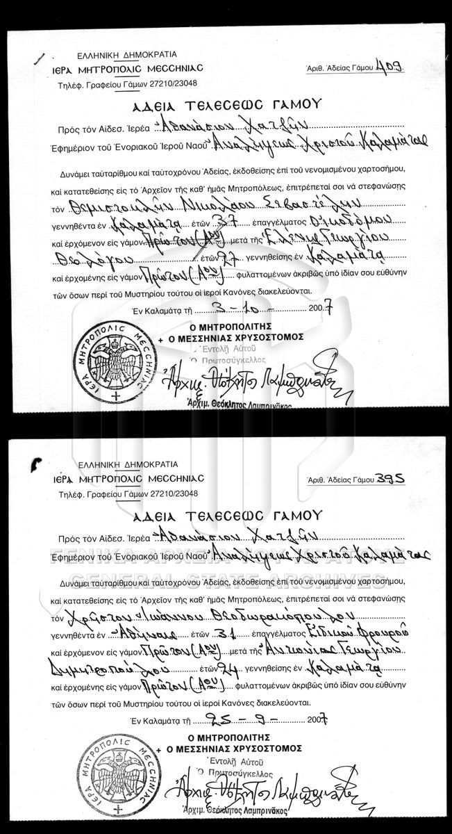 Το αρχείο του ιερού ναού Αναλήψεως του Σωτήρος Καλαμάτας περιλαμβάνει: 1 ψηφιοποιημένο βιβλίο γάμων, 1 ψηφιοποιημένο βιβλίο γεννήσεων-βαπ...