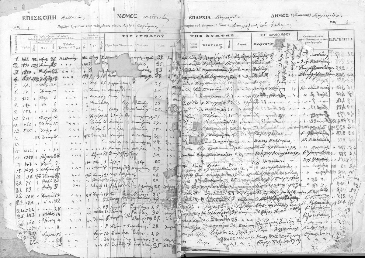 Το αρχείο του ιερού ναού Αναλήψεως του Σωτήρος Καλαμάτας περιλαμβάνει: 1 ψηφιοποιημένο βιβλίο γάμων, 1 ψηφιοποιημένο βιβλίο γεννήσεων-βαπ...