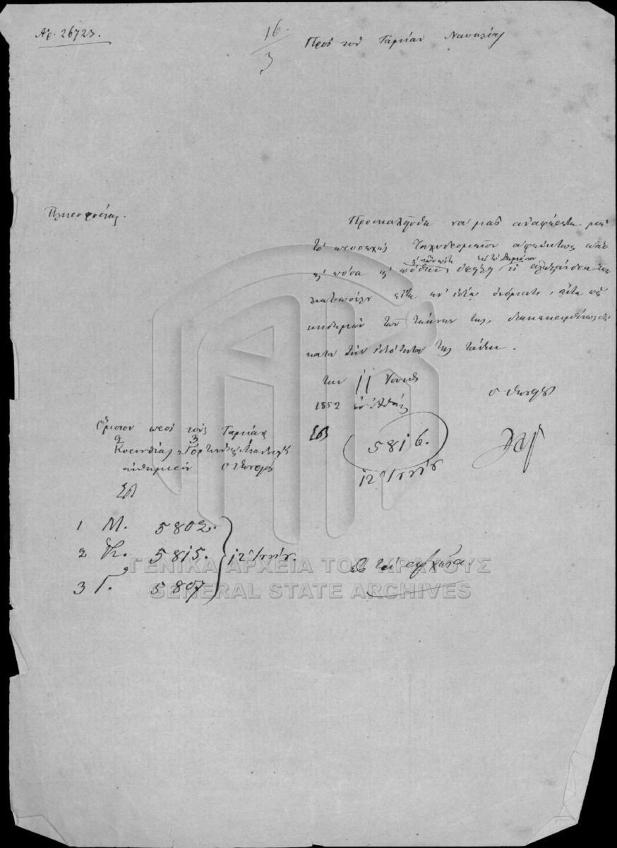Φάκελος #1657 - Νομαρχία Αρκαδίας, 1852  [1852]