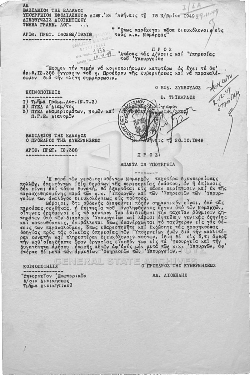 Περιεχόμενα: Δίαφοροι αιτήσεις εγγραφής σε εκλογικούς καταλόγους. Διεύθυνσις ελέγχου Βιομηχανίας αποφάσεις και διαταγαί περί κυλινδρο...