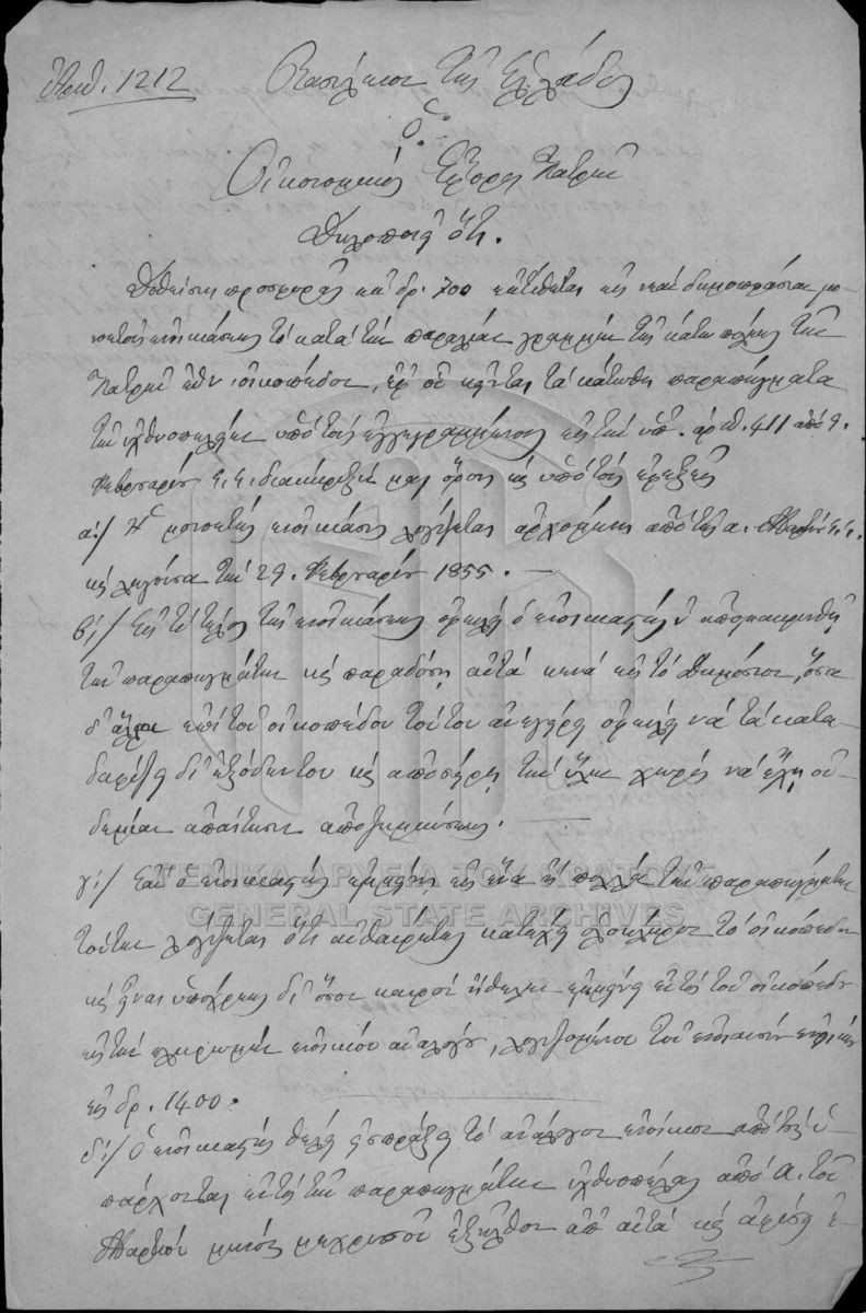 [Fonds] GRGSA-CSA_PAO005.01 SECRETARIAT/MINISTRY OF FINANCE ARCHIVE: NATIONAL LANDS (1833-1869) - SECRETARIAT/MINISTRY OF FINANCE ARCHIVE: NATIONAL LANDS (1833-1869) [1833 - 1869] Το αρχειακό σύνολο «Εθνικά Κτήματα» αποτελεί τμήμα του αρχείου της Κεντρικής Υπηρεσίας του Υπουργείου Οικονομικών και περιλαμβάνει τεκμήρ... |