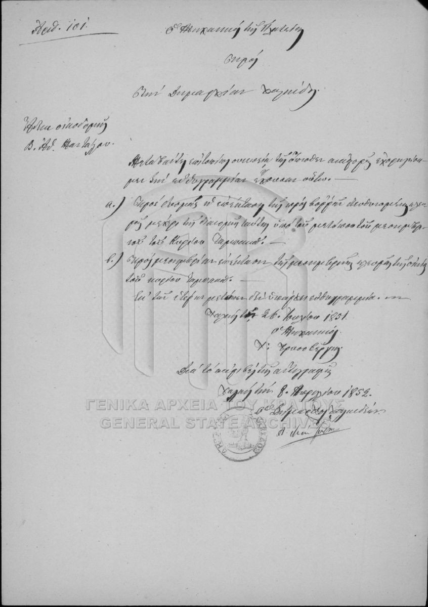 SECRETARIAT/MINISTRY OF FINANCE ARCHIVE: NATIONAL LANDS (1833-1869) - SECRETARIAT/MINISTRY OF FINANCE ARCHIVE: NATIONAL LANDS (1833-1869)  [1833 - 1869]