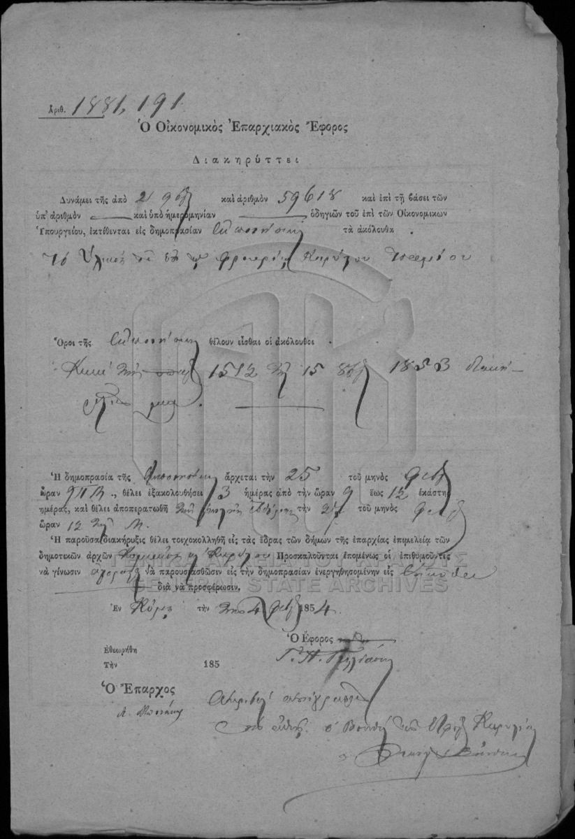 Φάκελος #1748 - Νομαρχία Ευβοίας, 1854  [1854]