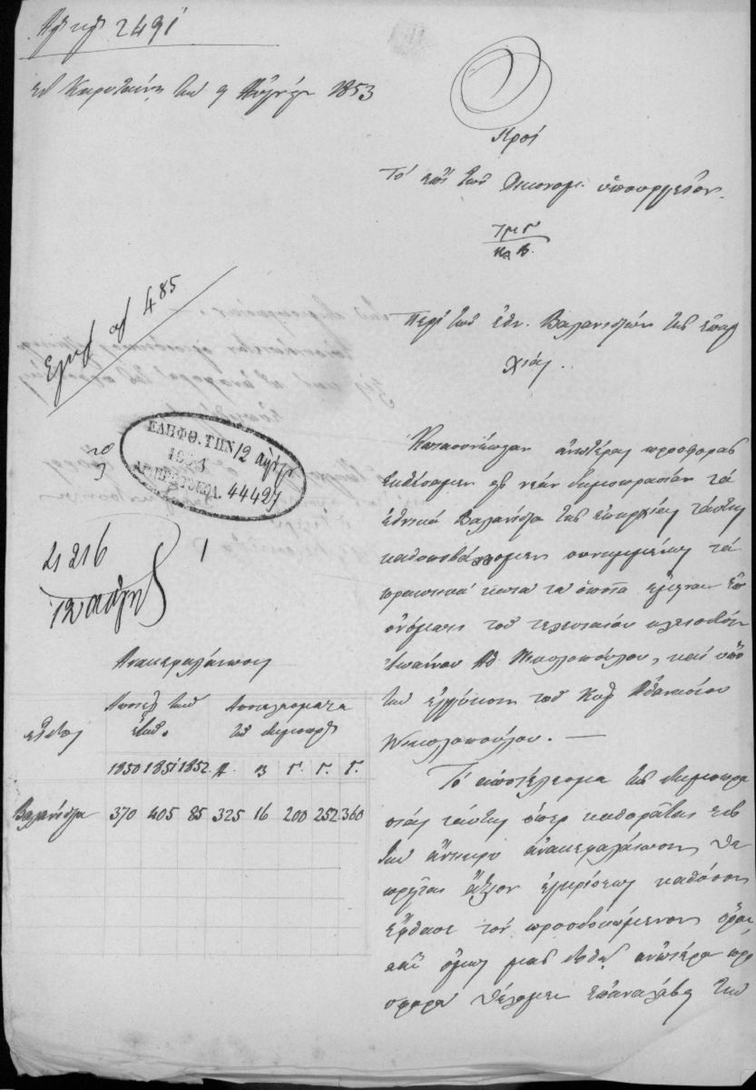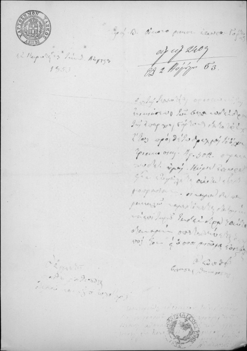 [Fonds] GRGSA-CSA_PAO005.01 ARCHIVES DE LA CHANCELLERIE/DU MINISTERE DES FINANCES : FERMES NATIONALES (1833-1869) - ARCHIVES DE LA CHANCELLERIE/DU MINISTERE DES FINANCES : FERMES NATIONALES (1833-1869) [1833 - 1869] Το αρχειακό σύνολο «Εθνικά Κτήματα» αποτελεί τμήμα του αρχείου της Κεντρικής Υπηρεσίας του Υπουργείου Οικονομικών και περιλαμβάνει τεκμήρ... |