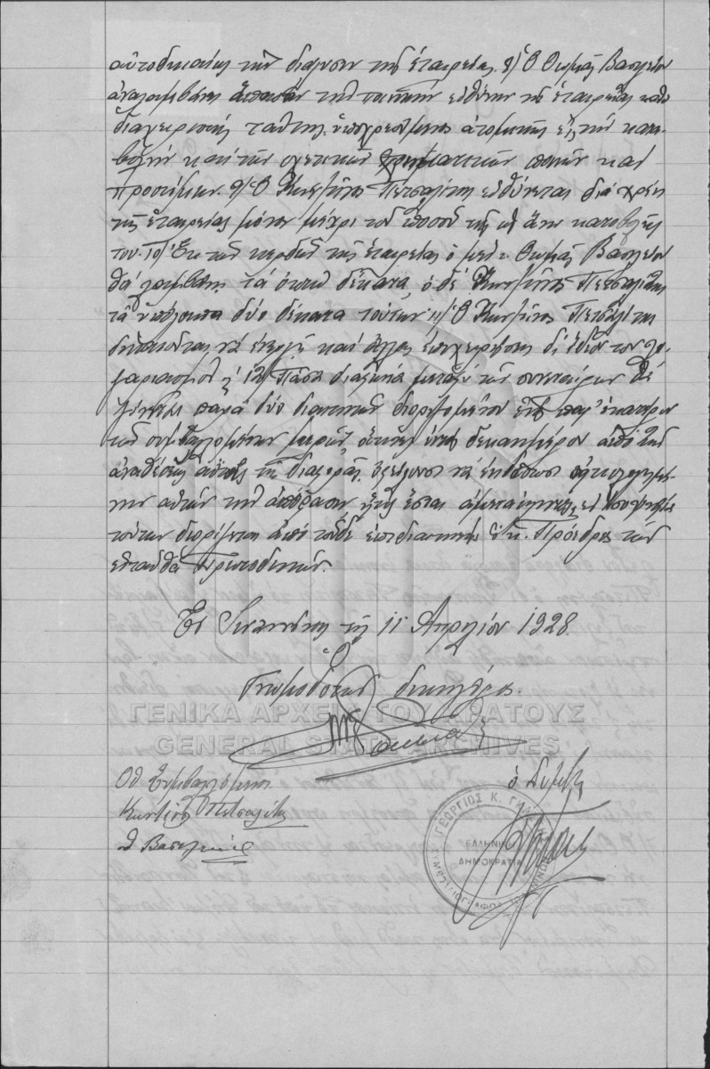 [Τεκμήριο] GRGSA-IAE_NOT001.01.F000010.IT003131 Τεκμήριο #3131 [11 Απριλίου 1928] Συμβολαιογραφική πράξη. Μετοχική εταιρεία. |