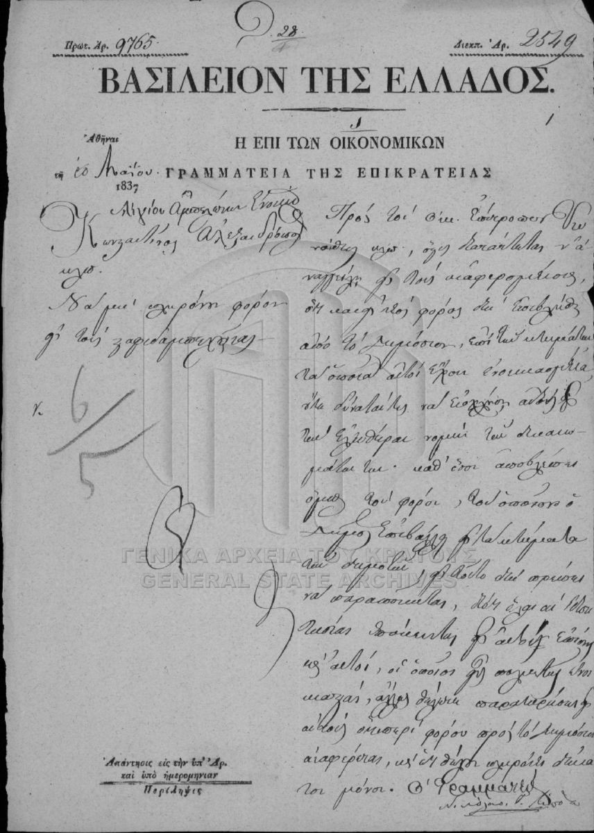 SECRETARIAT/MINISTRY OF FINANCE ARCHIVE: NATIONAL LANDS (1833-1869) - SECRETARIAT/MINISTRY OF FINANCE ARCHIVE: NATIONAL LANDS (1833-1869)  [1833 - 1869]