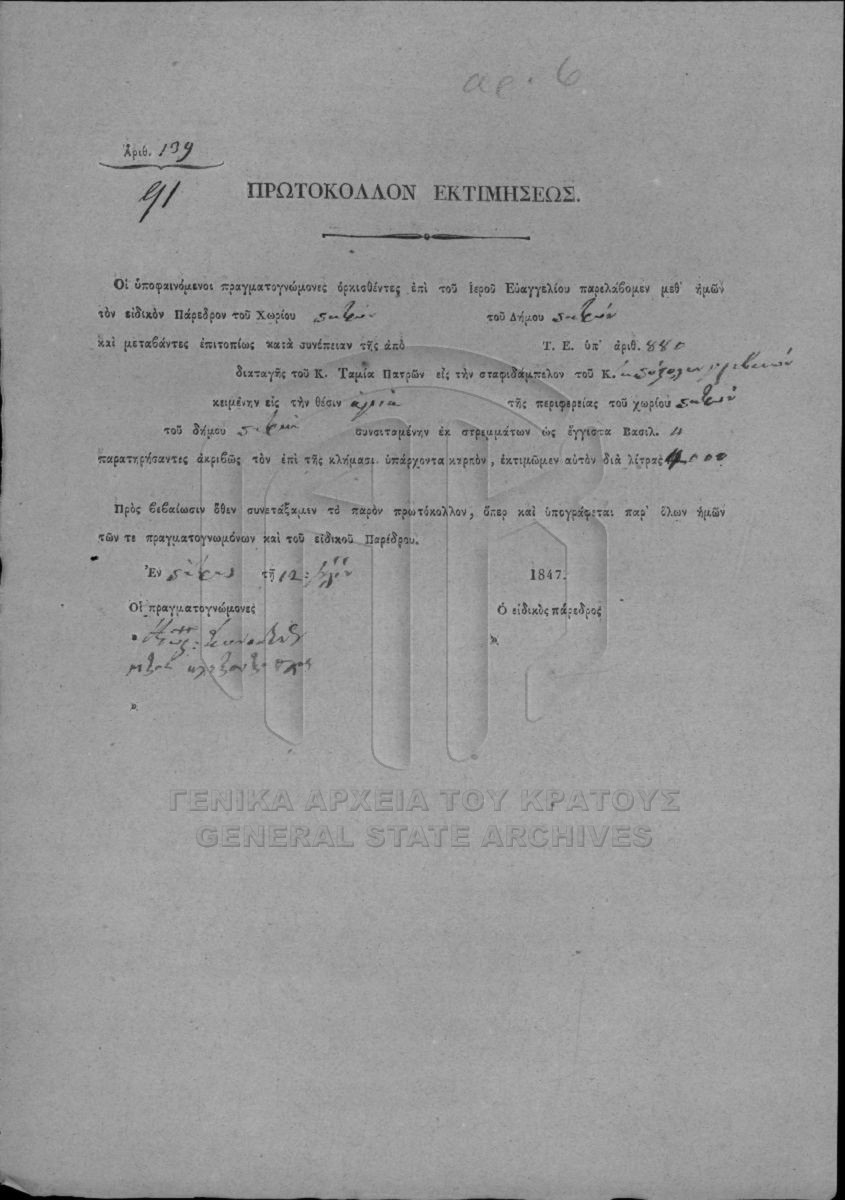 SECRETARIAT/MINISTRY OF FINANCE ARCHIVE: NATIONAL LANDS (1833-1869) - SECRETARIAT/MINISTRY OF FINANCE ARCHIVE: NATIONAL LANDS (1833-1869)  [1833 - 1869]