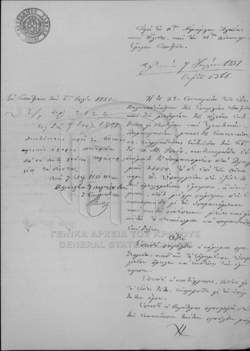 Φάκελος #2142 - Νομαρχία Αχαΐας και Ήλιδος, 1851  [1851]