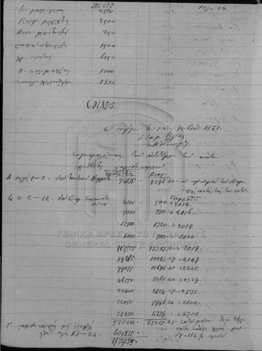 [File] GRGSA-CSA_PAO005.01.S06.SS05.F002142 File #2142 - SECRETARIAT/MINISTRY OF FINANCE ARCHIVE: NATIONAL LANDS (1833-1869) [1851] Multiannual and annual rentals of national perishable estates. Prefecture of Achaia and Ilida.  |