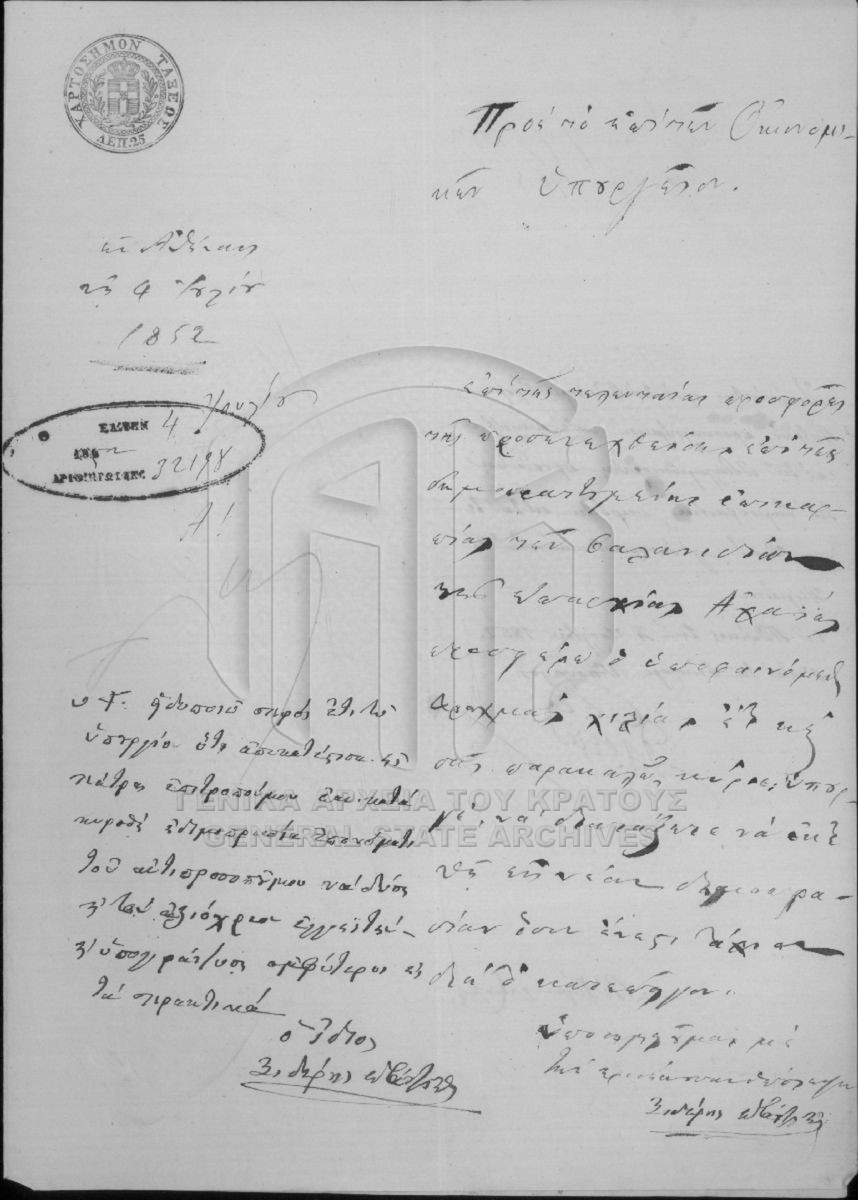 Φάκελος #2143 - Νομαρχία Αχαΐας και Ήλιδος, 1852  [1852]