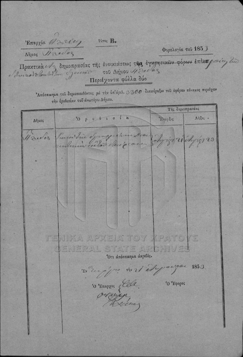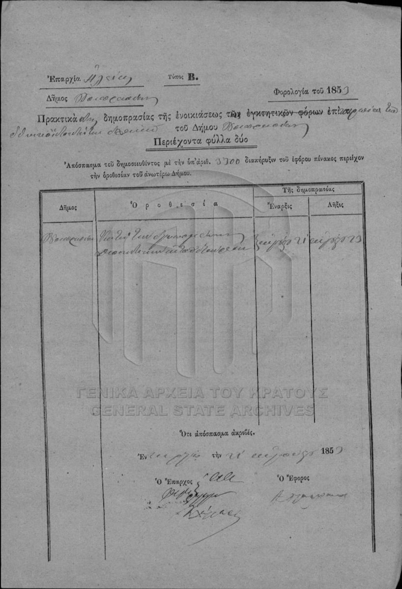 Multiannual and annual rentals of national perishable estates. Prefecture of Achaia and Ilida.