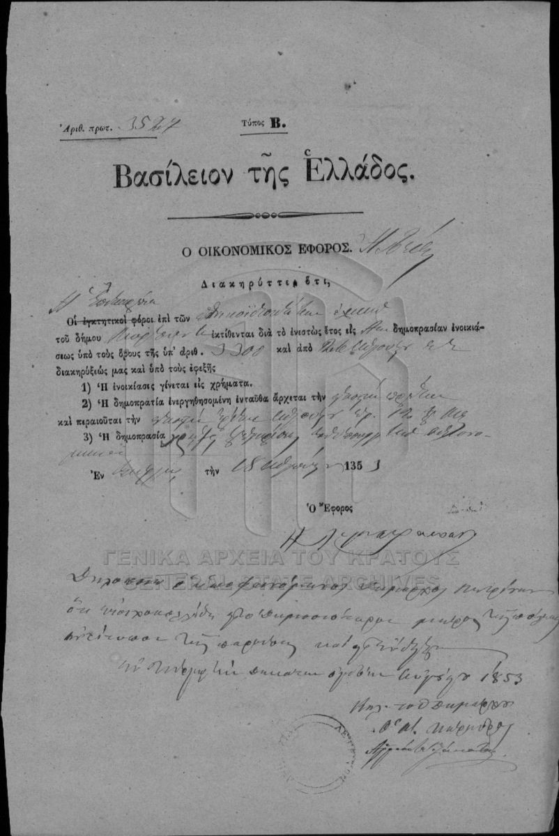 SECRETARIAT/MINISTRY OF FINANCE ARCHIVE: NATIONAL LANDS (1833-1869) - SECRETARIAT/MINISTRY OF FINANCE ARCHIVE: NATIONAL LANDS (1833-1869)  [1833 - 1869]