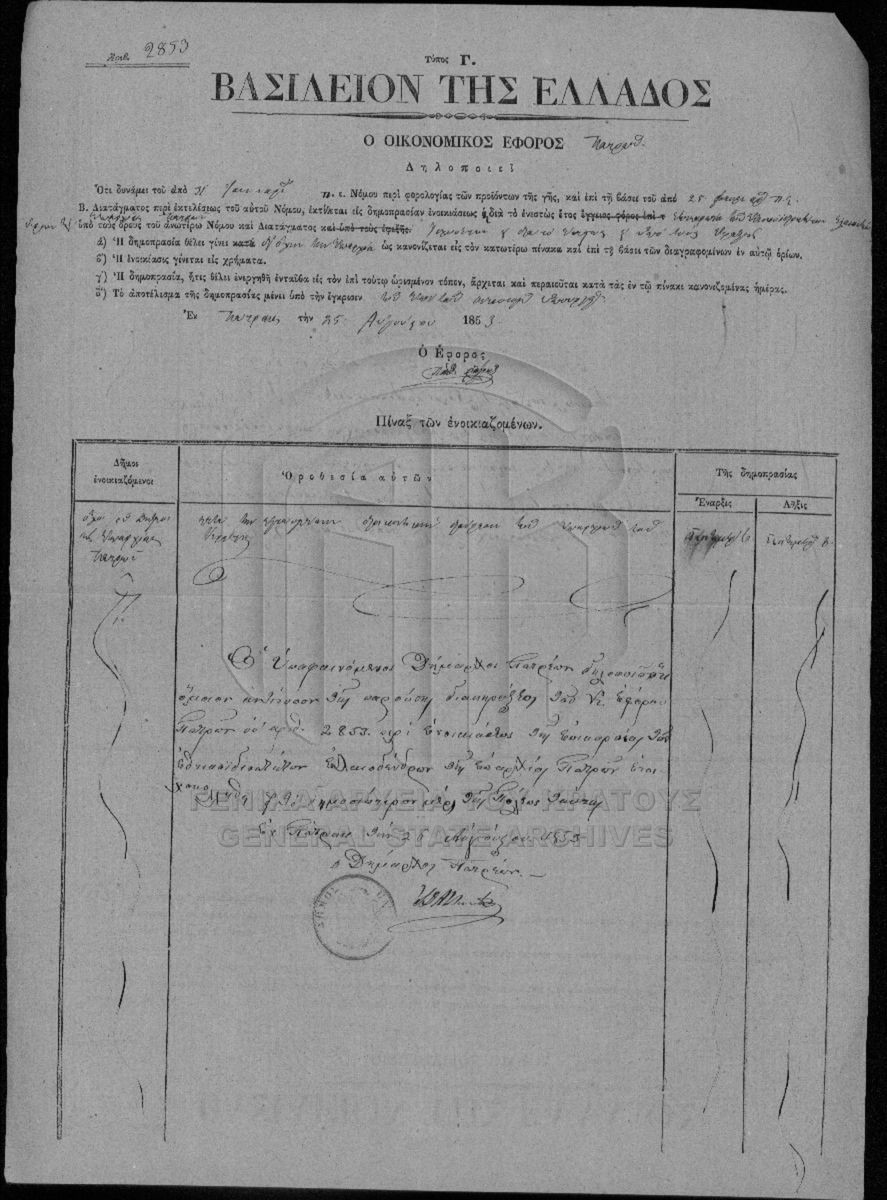 SECRETARIAT/MINISTRY OF FINANCE ARCHIVE: NATIONAL LANDS (1833-1869) - SECRETARIAT/MINISTRY OF FINANCE ARCHIVE: NATIONAL LANDS (1833-1869)  [1833 - 1869]