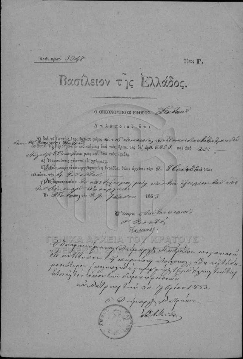 SECRETARIAT/MINISTRY OF FINANCE ARCHIVE: NATIONAL LANDS (1833-1869) - SECRETARIAT/MINISTRY OF FINANCE ARCHIVE: NATIONAL LANDS (1833-1869)  [1833 - 1869]