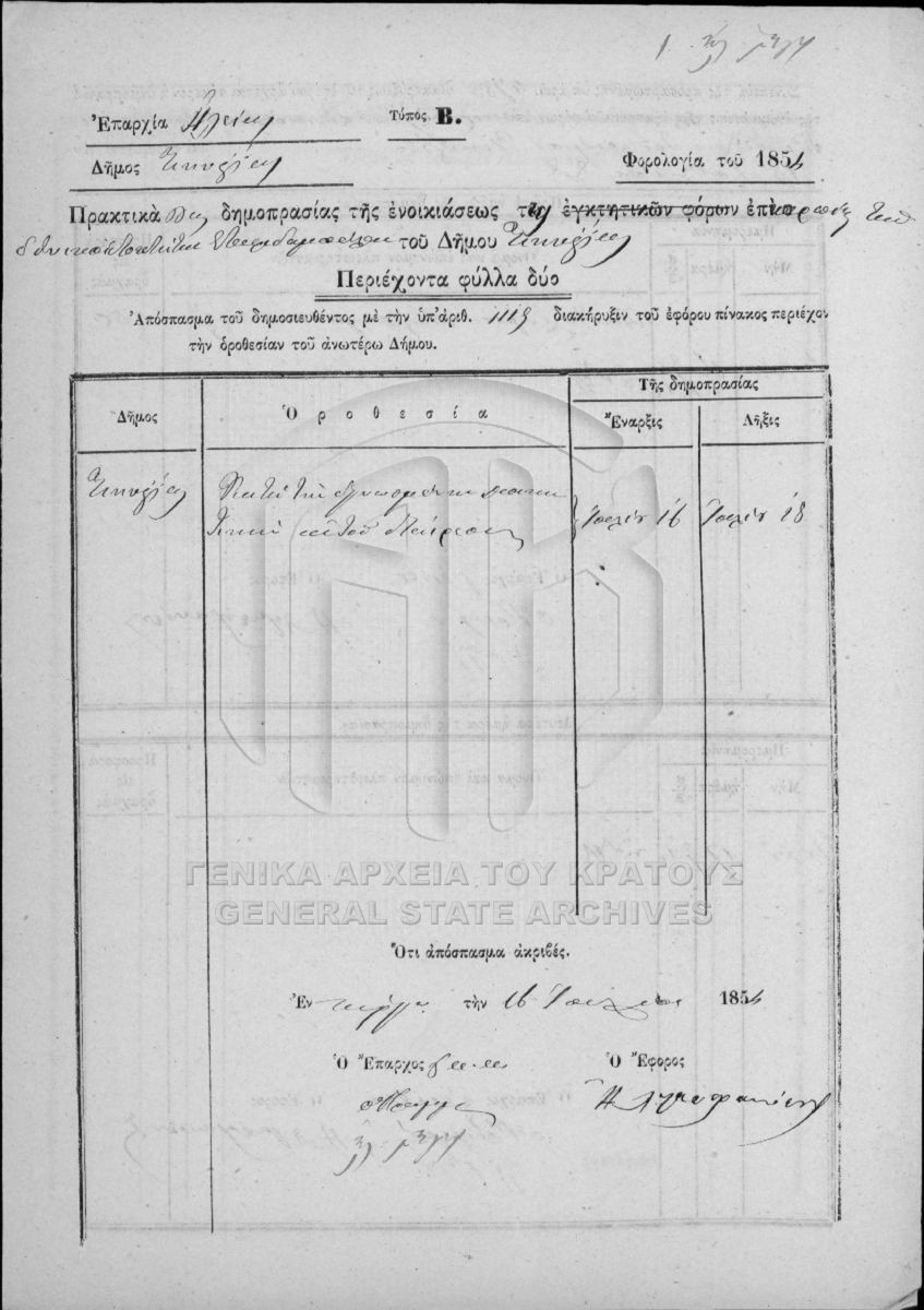 Location annuelle et pluriannuelles des terains nationaux soumis a l’usure. Departement d’Aitolie et Acarnanie.