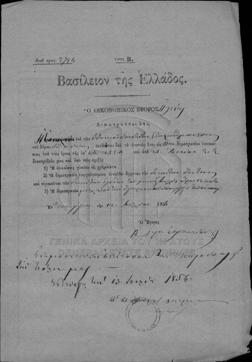 Φάκελος #2146 - Νομαρχία Αχαΐας και Ήλιδος, 1854  [1854]