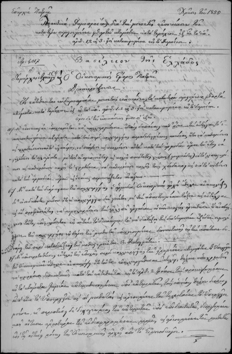 Φάκελος #2148 - Νομαρχία Αχαΐας και Ήλιδος, 1855  [1855]
