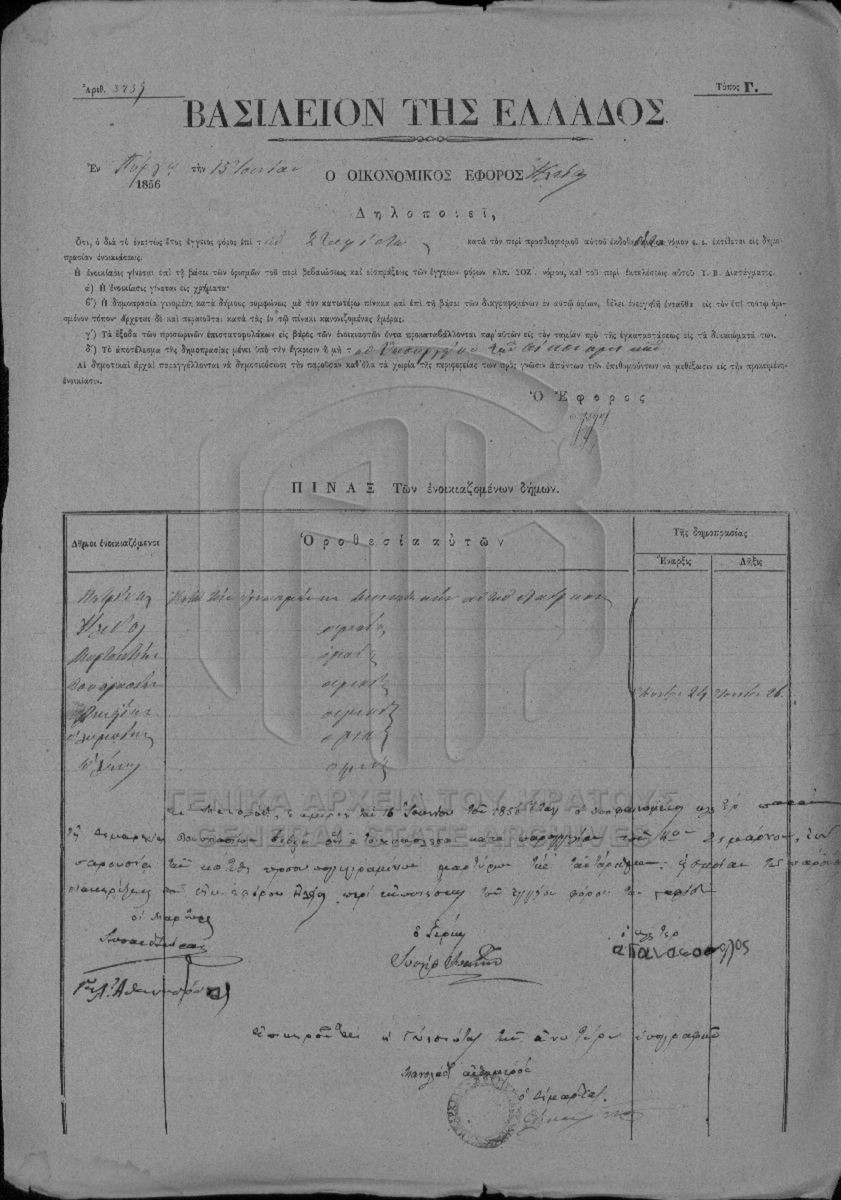 SECRETARIAT/MINISTRY OF FINANCE ARCHIVE: NATIONAL LANDS (1833-1869) - SECRETARIAT/MINISTRY OF FINANCE ARCHIVE: NATIONAL LANDS (1833-1869)  [1833 - 1869]