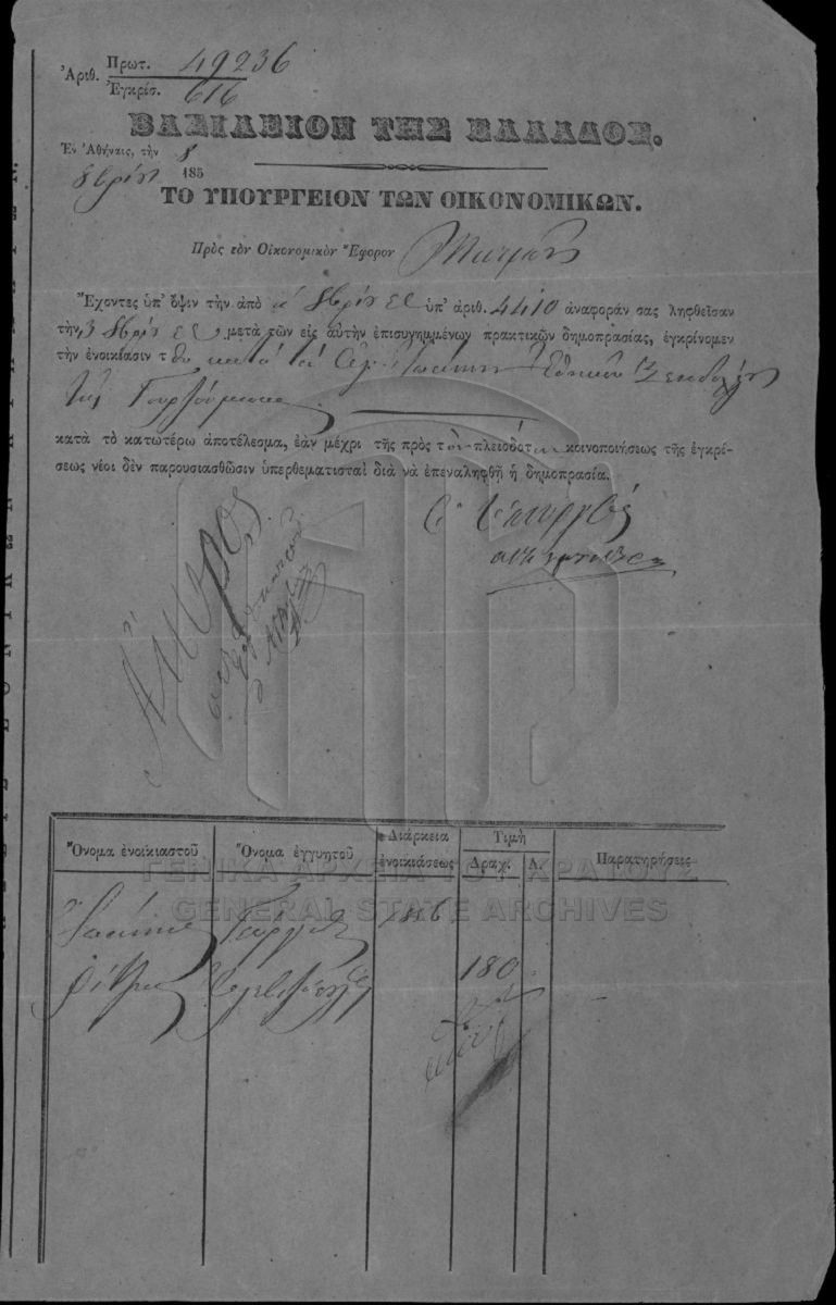 Το αρχειακό σύνολο «Εθνικά Κτήματα» αποτελεί τμήμα του αρχείου της Κεντρικής Υπηρεσίας του Υπουργείου Οικονομικών και περιλαμβάνει τεκμήρ...