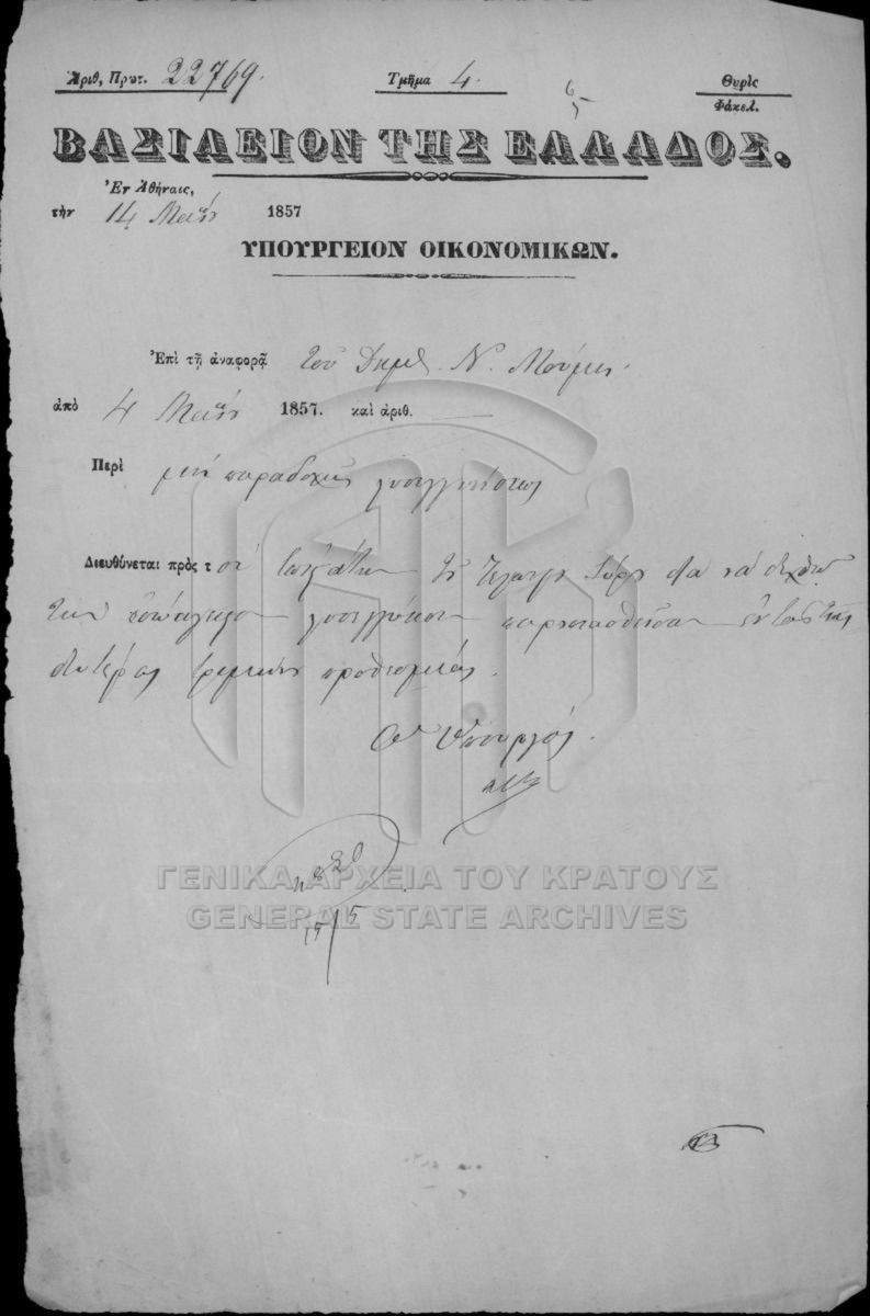 SECRETARIAT/MINISTRY OF FINANCE ARCHIVE: NATIONAL LANDS (1833-1869) - SECRETARIAT/MINISTRY OF FINANCE ARCHIVE: NATIONAL LANDS (1833-1869)  [1833 - 1869]