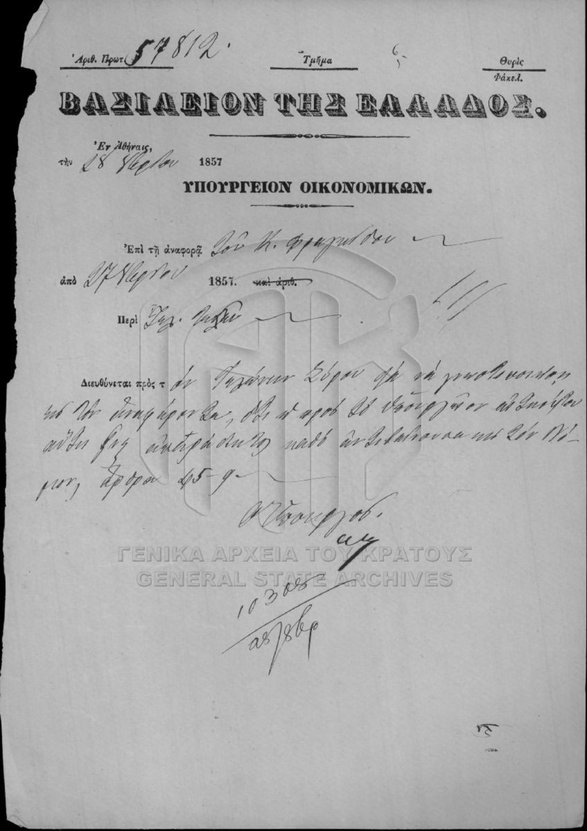 Το αρχειακό σύνολο «Εθνικά Κτήματα» αποτελεί τμήμα του αρχείου της Κεντρικής Υπηρεσίας του Υπουργείου Οικονομικών και περιλαμβάνει τεκμήρ...