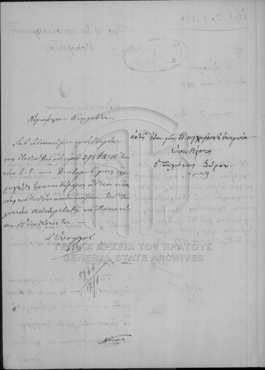 [Fonds] GRGSA-CSA_PAO005.01 SECRETARIAT/MINISTRY OF FINANCE ARCHIVE: NATIONAL LANDS (1833-1869) - SECRETARIAT/MINISTRY OF FINANCE ARCHIVE: NATIONAL LANDS (1833-1869) [1833 - 1869] Το αρχειακό σύνολο «Εθνικά Κτήματα» αποτελεί τμήμα του αρχείου της Κεντρικής Υπηρεσίας του Υπουργείου Οικονομικών και περιλαμβάνει τεκμήρ... |